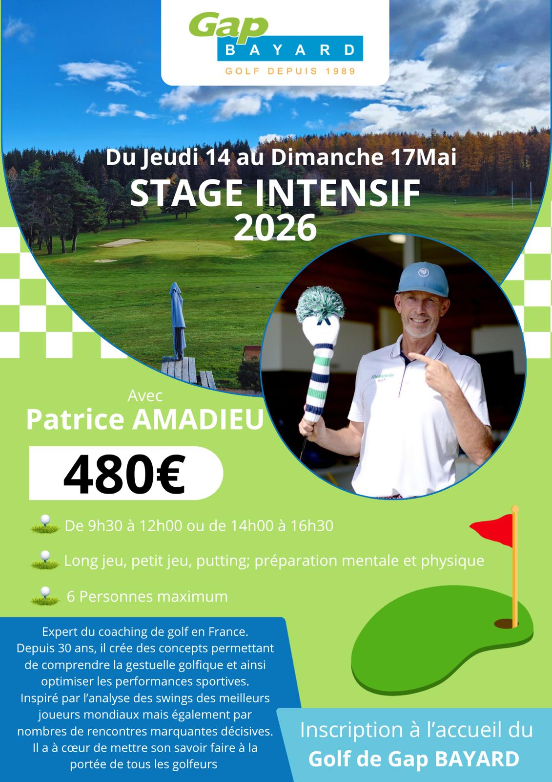 Que vous soyez débutant ou joueur confirmé, Patrice Amadieu propose des cours et stages adaptés à tous les niveaux pour améliorer votre swing, votre technique et votre stratégie sur le parcours.